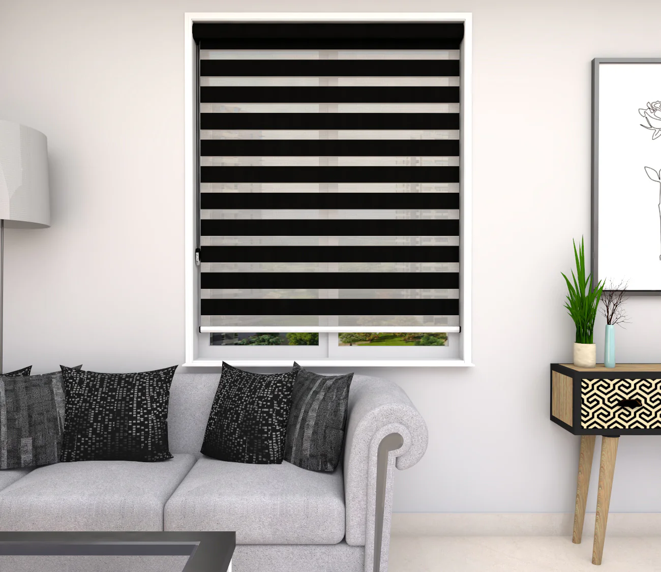 Add refined light control to your space with our Zebra Blinds, designed with a dual-layer fabric system for adjustable daylight and privacy. The alternating sheer and opaque panels glide smoothly, offering both function and a sleek modern look.